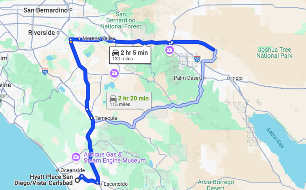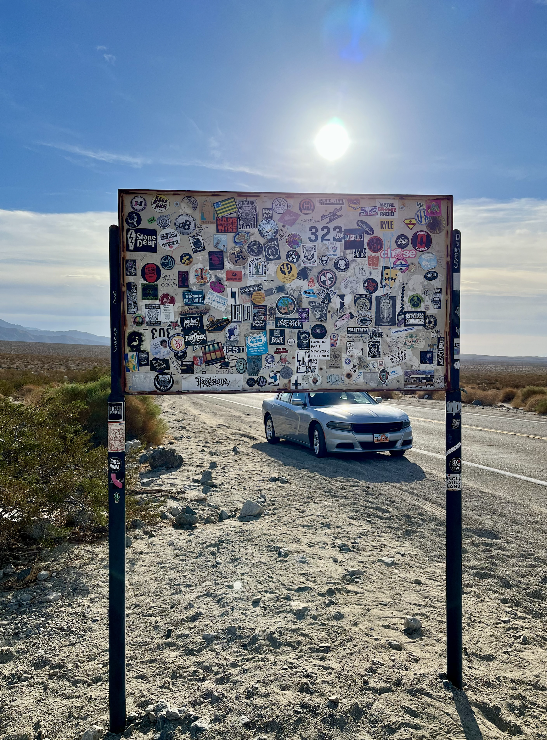 Of course, there were two key things I needed to bring with me on the ride – Songs for the Deaf and Welcome to Sky Valley. I was able to cue up the former as I was leaving Vista and traversing the winding mountain highways into the more rural landscapes, and I cued up the former as I was driving through the Coachella Valley on my final approach to the sign. Thank you, Spotify.